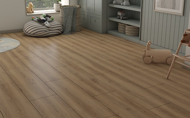 Толщина ламелей – 10мм. Пол получается прочным, устойчивым к весовым нагрузкам. Ламинат не прогибается под ножками тяжелой мебели, на нем не появляется вмятин и трещин от падения предметов.