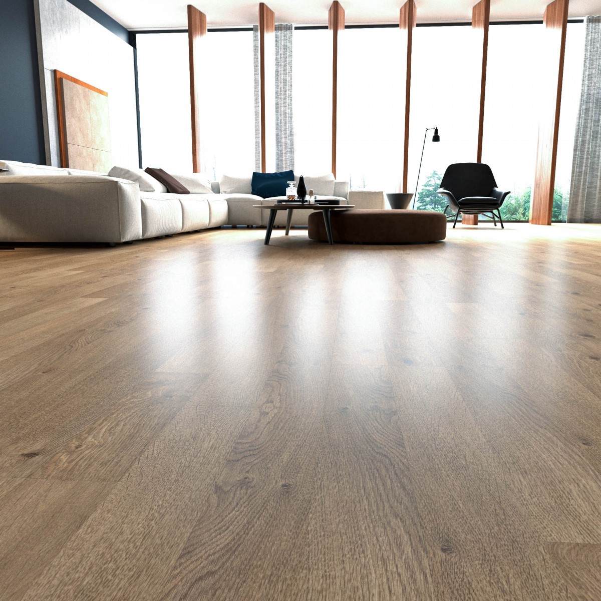 Материал полностью готов к установке. Каждая доска оснащена замковым соединением, процесс сбора полов занимает минимум времени. На поверхность ламелей нанесено декоративное покрытие, так что дополнительной обработки не требуется. Сразу после укладки пол готов к эксплуатации.