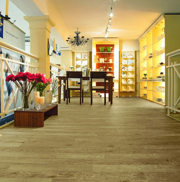 Покрытие подходит для облицовки полов в любом стиле оформления интерьера. Рисунок "Двухполосный" хорошо сочетается с разными настенными панелями, позволяет воплощать интересные дизайнерские находки.