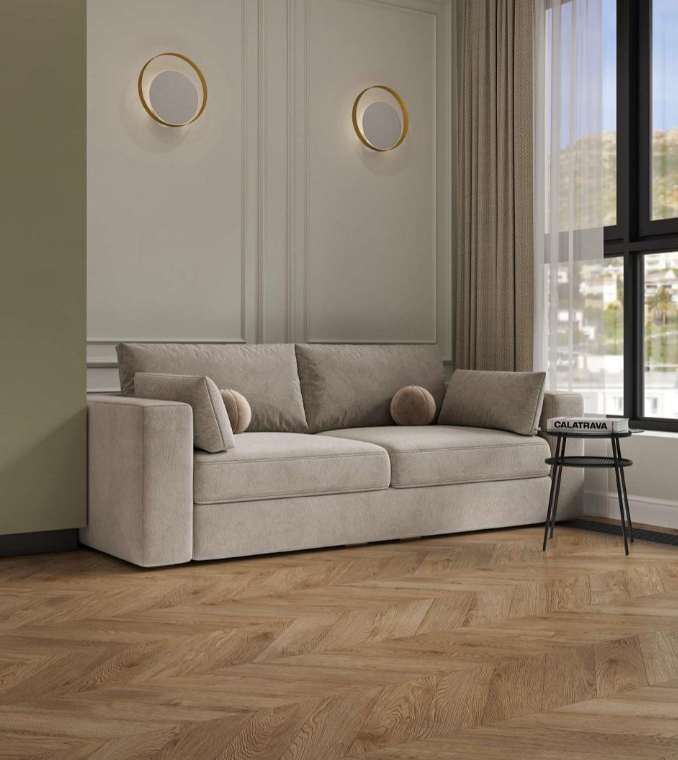 Покрытие подходит для облицовки полов в любом стиле оформления интерьера. Рисунок "Елочкой" хорошо сочетается с разными настенными панелями, позволяет воплощать интересные дизайнерские находки.