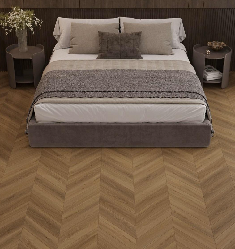 Покрытие подходит для облицовки полов в любом стиле оформления интерьера. Рисунок "Елочкой" хорошо сочетается с разными настенными панелями, позволяет воплощать интересные дизайнерские находки.