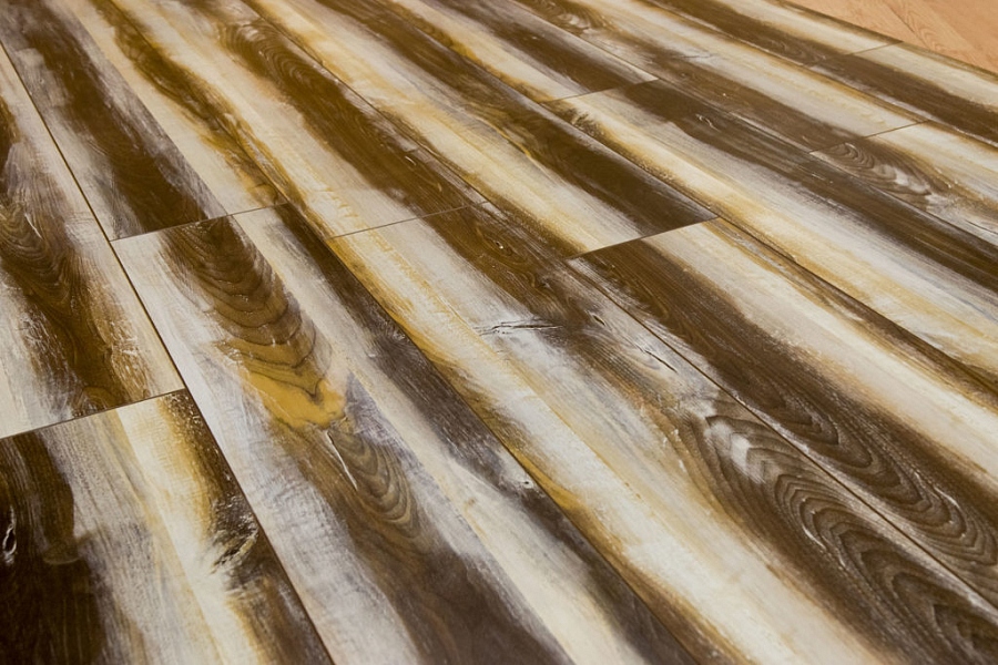 Уход за ламинатом не сложен. Материал не боится никаких загрязнений, не портится от бытовой химии. Сложные пятна можно удалять даже ацетоном – на поверхности не останется пятен и выцветших участков.