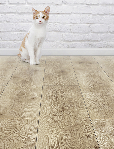 Уход за ламинатом не сложен. Материал не боится никаких загрязнений, не портится от бытовой химии. Сложные пятна можно удалять даже ацетоном – на поверхности не останется пятен и выцветших участков.