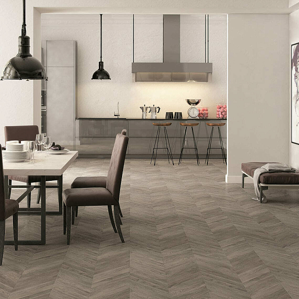 Покрытие подходит для облицовки полов в любом стиле оформления интерьера. Рисунок "Елочкой" хорошо сочетается с разными настенными панелями, позволяет воплощать интересные дизайнерские находки.