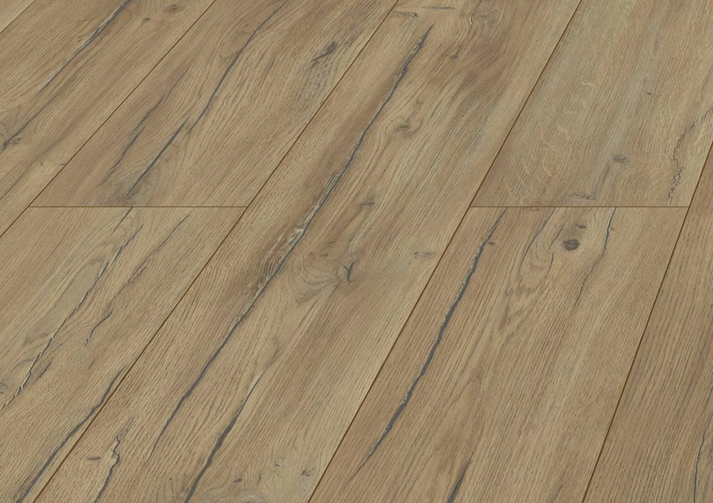 Толщина ламелей – 8мм. Пол получается прочным, устойчивым к весовым нагрузкам. Ламинат не прогибается под ножками тяжелой мебели, на нем не появляется вмятин и трещин от падения предметов.