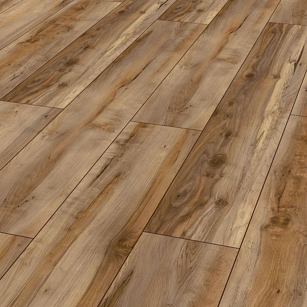 Толщина ламелей – 8мм. Пол получается прочным, устойчивым к весовым нагрузкам. Ламинат не прогибается под ножками тяжелой мебели, на нем не появляется вмятин и трещин от падения предметов.