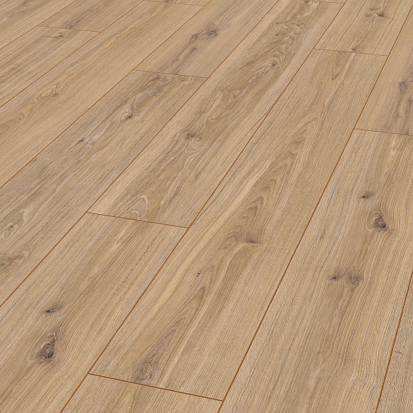 Толщина ламелей – 12мм. Пол получается прочным, устойчивым к весовым нагрузкам. Ламинат не прогибается под ножками тяжелой мебели, на нем не появляется вмятин и трещин от падения предметов.