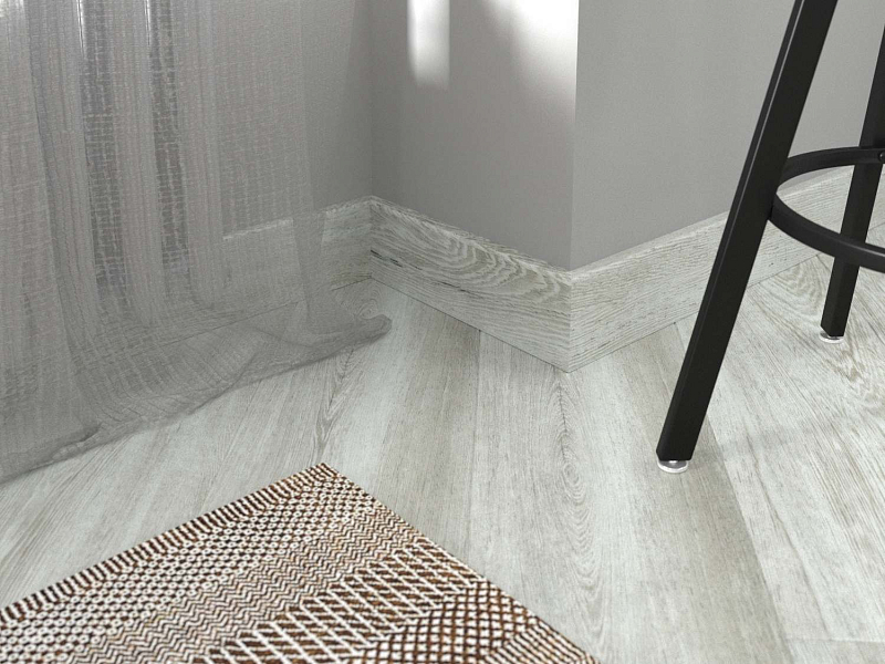 Сделаны плашки из MDF, ПВХ. Этот материал хорошо сочетается с любым стилевым оформлением комнаты, гармонирует с разными настенными, напольными и потолочными покрытиями. Оттенок Серый вписывается в разное цветовое оформление пола, становясь тем самым акцентом, который делает напольное покрытие законченным. Плинтус можно укладывать с полами из ламината, линолеума, досок, ковролина, подбирая цвет под оттенок половиц или играя на контрасте.
