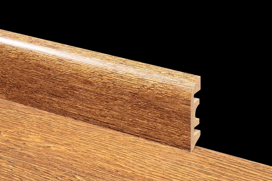 Сделаны плашки из MDF. Этот материал хорошо сочетается с любым стилевым оформлением комнаты, гармонирует с разными настенными, напольными и потолочными покрытиями. Оттенок Коричневый вписывается в разное цветовое оформление пола, становясь тем самым акцентом, который делает напольное покрытие законченным. Плинтус можно укладывать с полами из ламината, линолеума, досок, ковролина, подбирая цвет под оттенок половиц или играя на контрасте.