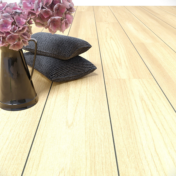 Толщина ламелей – 11мм. Пол получается прочным, устойчивым к весовым нагрузкам. Ламинат не прогибается под ножками тяжелой мебели, на нем не появляется вмятин и трещин от падения предметов.