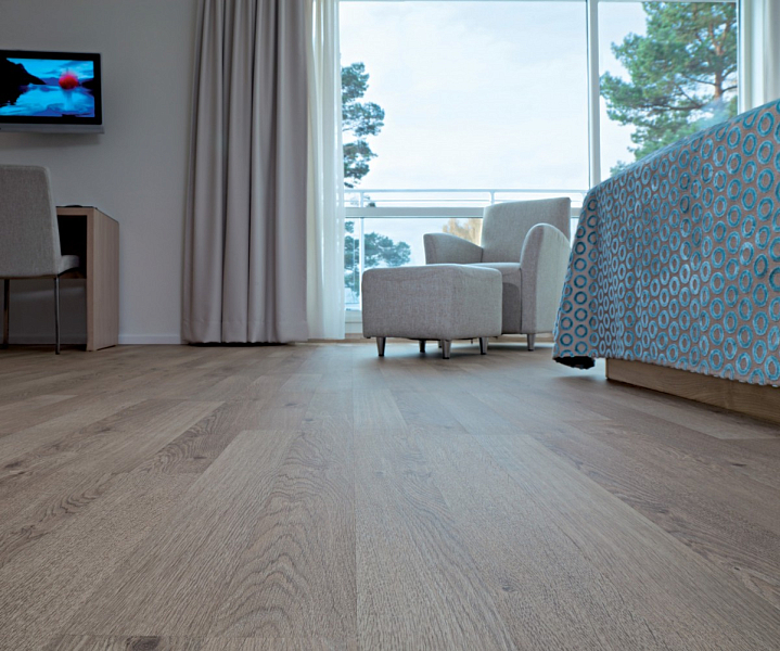 Материал полностью готов к установке. Каждая доска оснащена замковым соединением, процесс сбора полов занимает минимум времени. На поверхность ламелей нанесено декоративное покрытие, так что дополнительной обработки не требуется. Сразу после укладки пол готов к эксплуатации.
