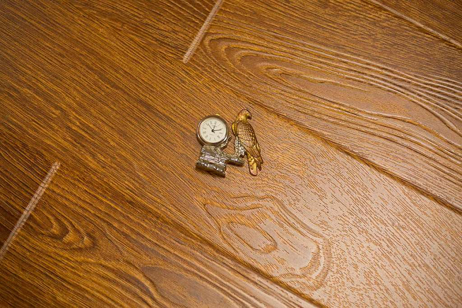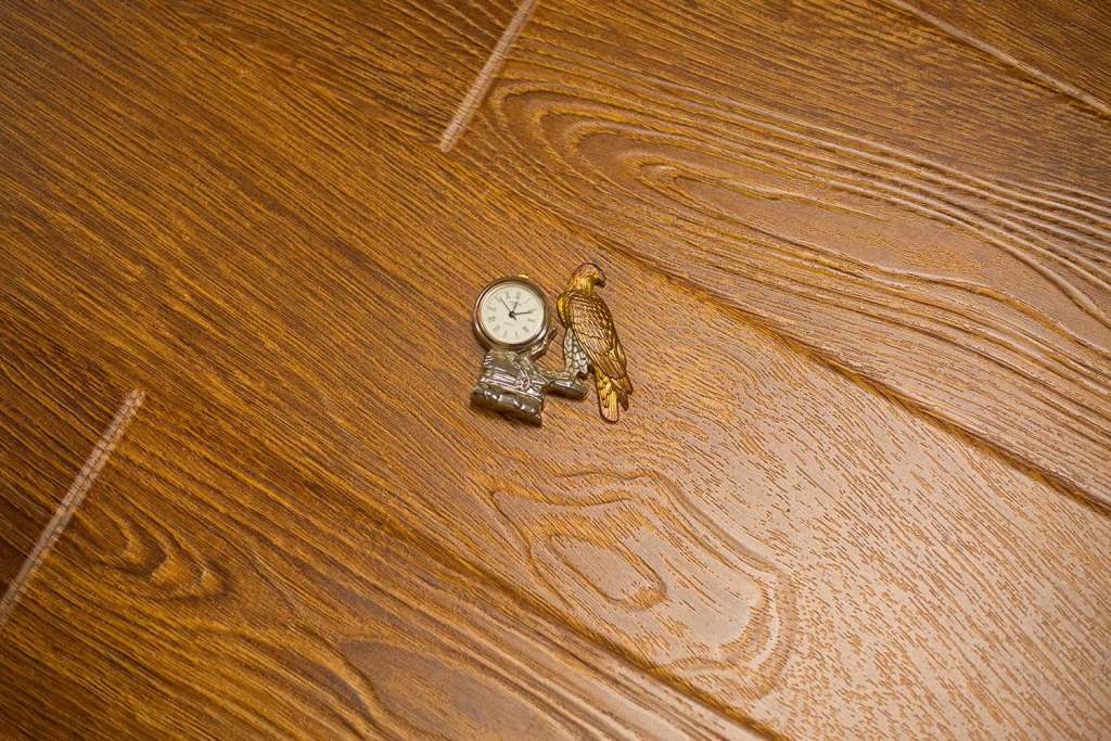 Толщина ламелей – 12мм. Пол получается прочным, устойчивым к весовым нагрузкам. Ламинат не прогибается под ножками тяжелой мебели, на нем не появляется вмятин и трещин от падения предметов.