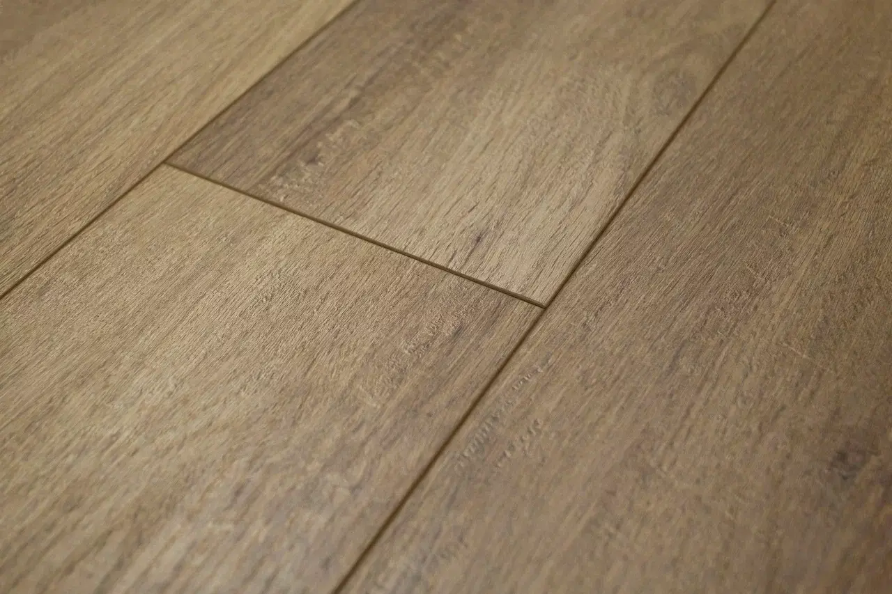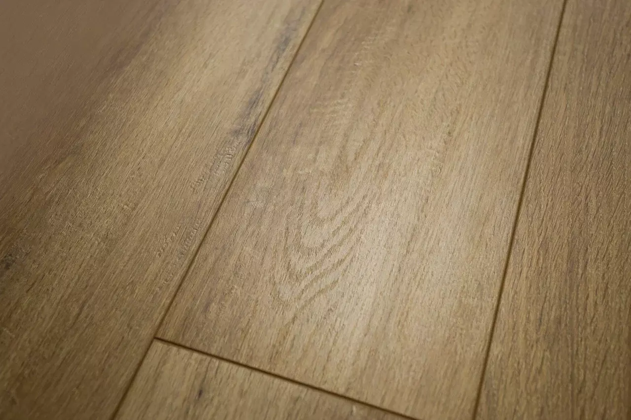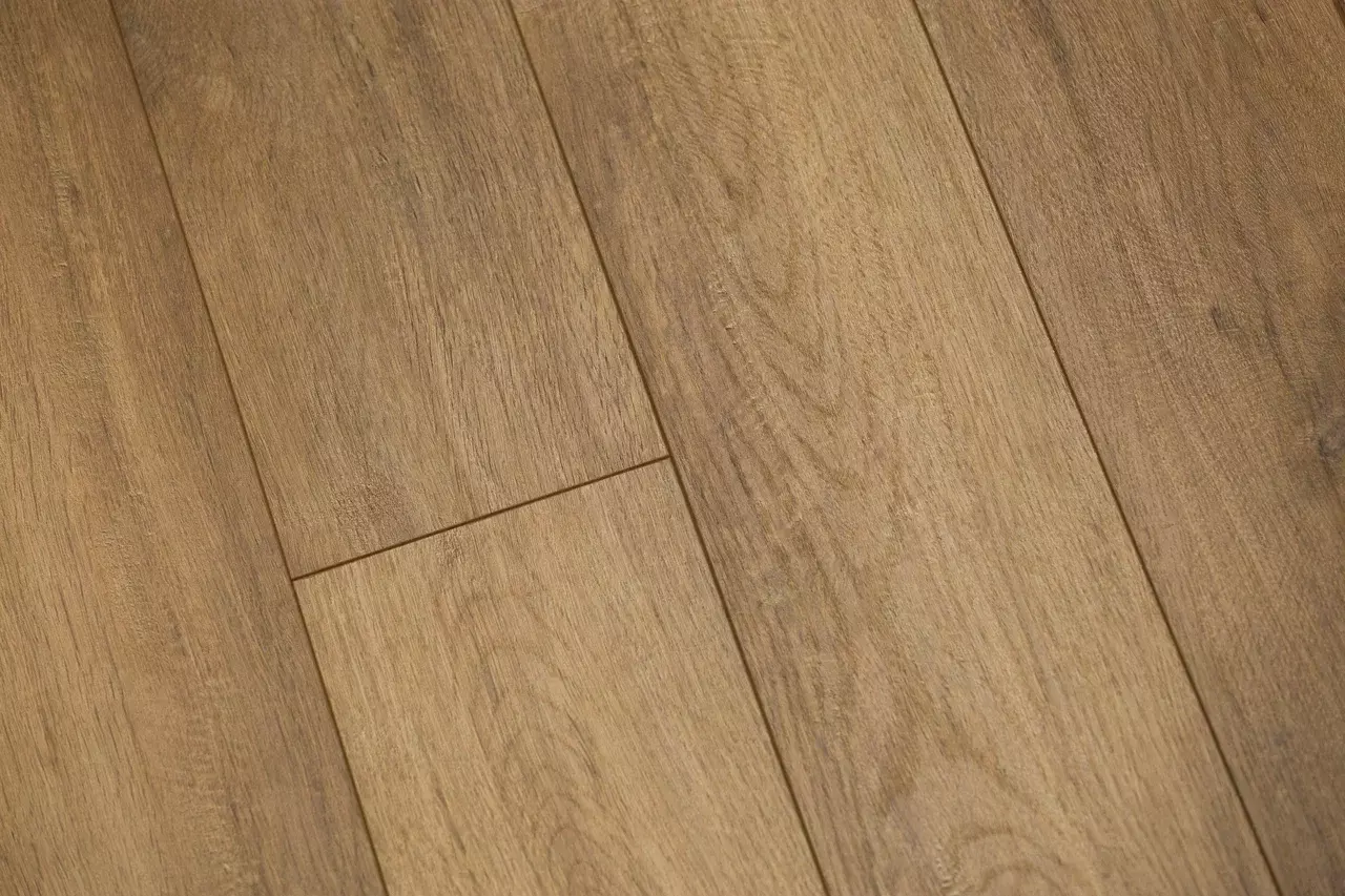Толщина ламелей – 12мм. Пол получается прочным, устойчивым к весовым нагрузкам. Ламинат не прогибается под ножками тяжелой мебели, на нем не появляется вмятин и трещин от падения предметов.