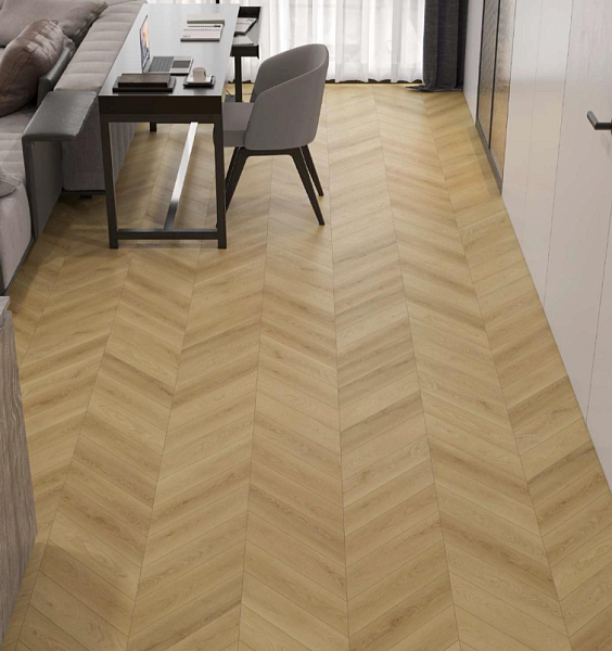 Покрытие подходит для облицовки полов в любом стиле оформления интерьера. Рисунок "Елочкой" хорошо сочетается с разными настенными панелями, позволяет воплощать интересные дизайнерские находки.