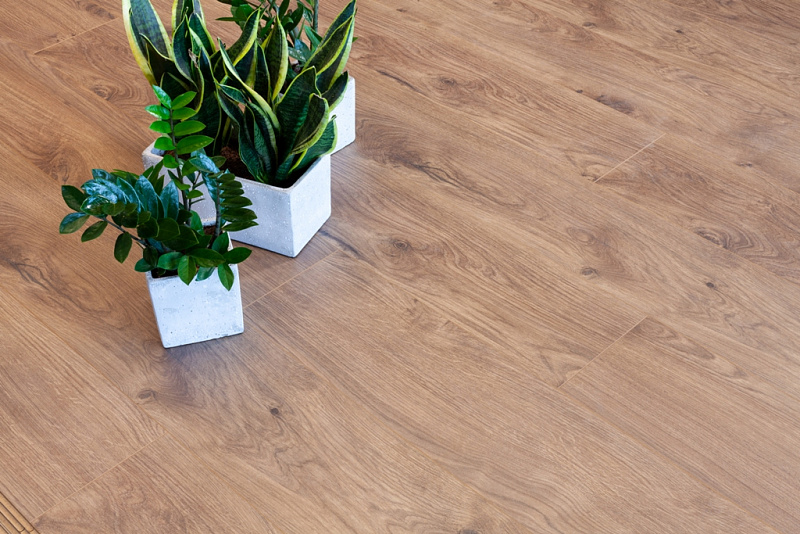 Толщина ламелей – 8мм. Пол получается прочным, устойчивым к весовым нагрузкам. Ламинат не прогибается под ножками тяжелой мебели, на нем не появляется вмятин и трещин от падения предметов.