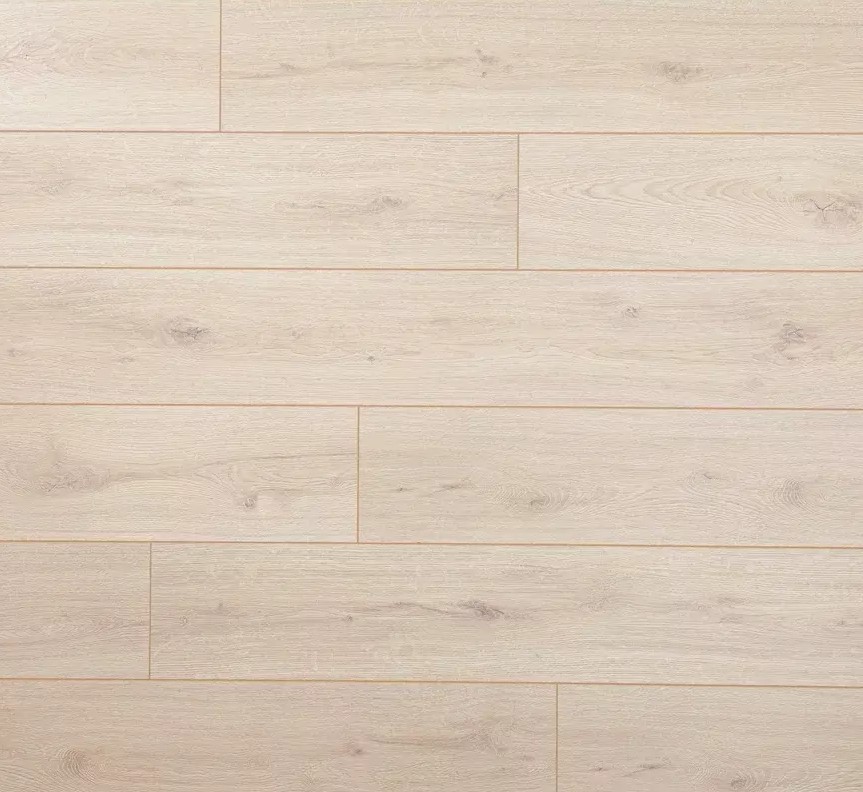 Толщина ламелей – 8мм. Пол получается прочным, устойчивым к весовым нагрузкам. Ламинат не прогибается под ножками тяжелой мебели, на нем не появляется вмятин и трещин от падения предметов.