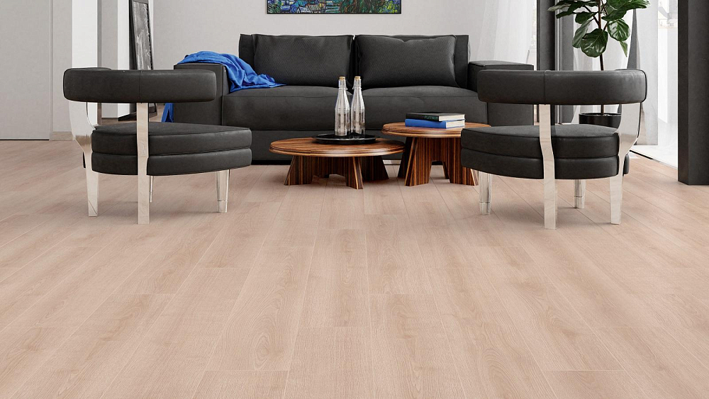 Толщина ламелей – 10мм. Пол получается прочным, устойчивым к весовым нагрузкам. Ламинат не прогибается под ножками тяжелой мебели, на нем не появляется вмятин и трещин от падения предметов.