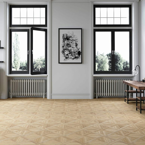 Покрытие подходит для облицовки полов в любом стиле оформления интерьера. Рисунок "Под художественный паркет" хорошо сочетается с разными настенными панелями, позволяет воплощать интересные дизайнерские находки.