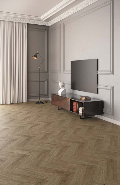 Покрытие подходит для облицовки полов в любом стиле оформления интерьера. Рисунок "Елочкой" хорошо сочетается с разными настенными панелями, позволяет воплощать интересные дизайнерские находки.