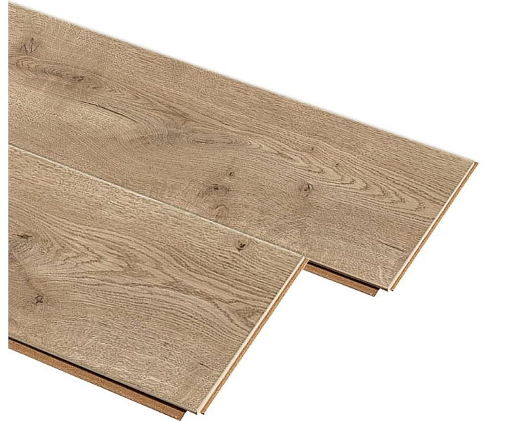 Толщина ламелей – 8мм. Пол получается прочным, устойчивым к весовым нагрузкам. Ламинат не прогибается под ножками тяжелой мебели, на нем не появляется вмятин и трещин от падения предметов.