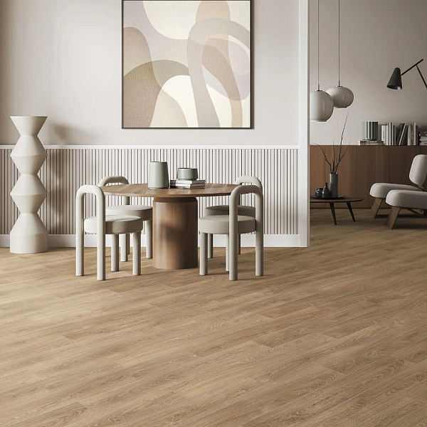 Покрытие подходит для облицовки полов в любом стиле оформления интерьера. Рисунок "Однополосный" хорошо сочетается с разными настенными панелями, позволяет воплощать интересные дизайнерские находки.