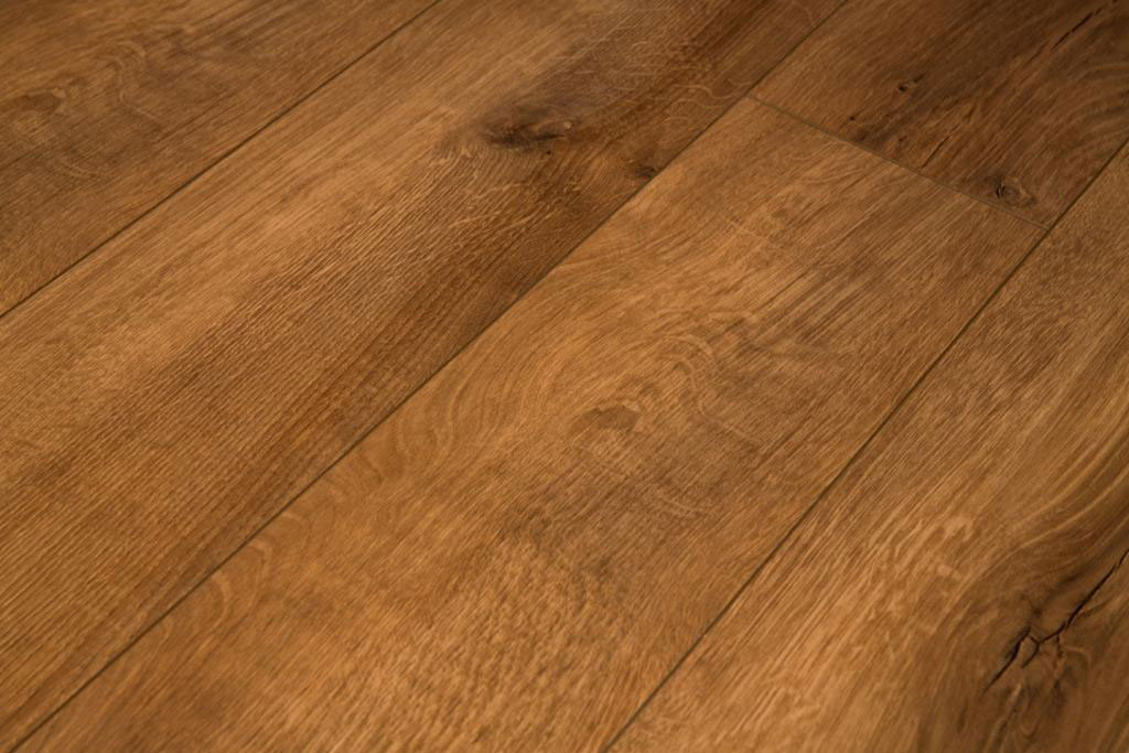 Толщина ламелей – 8мм. Пол получается прочным, устойчивым к весовым нагрузкам. Ламинат не прогибается под ножками тяжелой мебели, на нем не появляется вмятин и трещин от падения предметов.