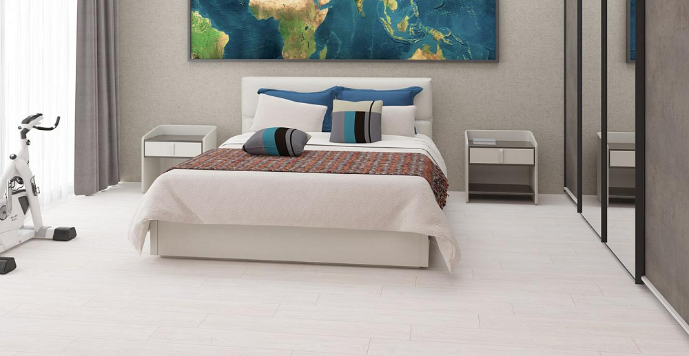Толщина ламелей – 12мм. Пол получается прочным, устойчивым к весовым нагрузкам. Ламинат не прогибается под ножками тяжелой мебели, на нем не появляется вмятин и трещин от падения предметов.