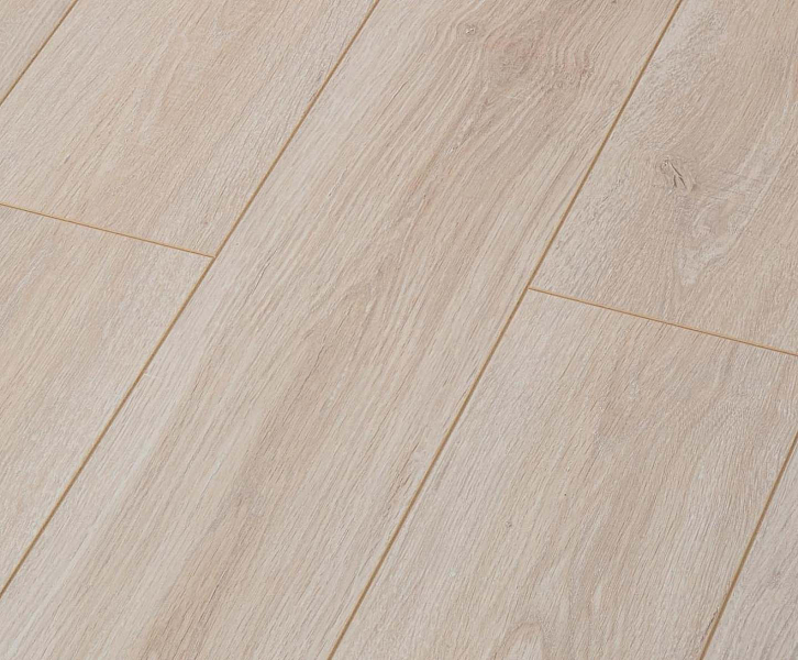 Толщина ламелей – 8мм. Пол получается прочным, устойчивым к весовым нагрузкам. Ламинат не прогибается под ножками тяжелой мебели, на нем не появляется вмятин и трещин от падения предметов.