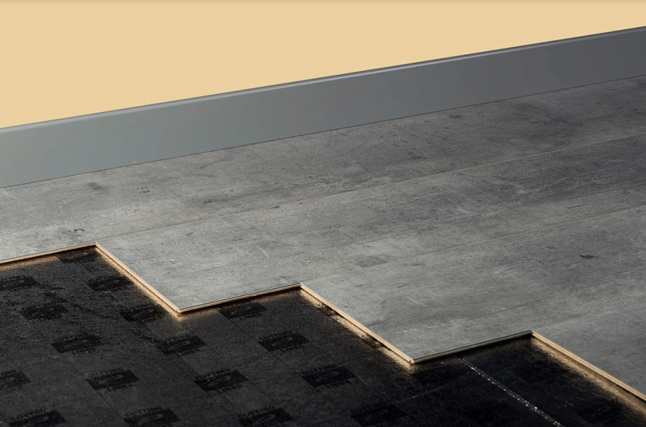 Покрытие подходит для облицовки полов в любом стиле оформления интерьера. Рисунок "Под бетон" хорошо сочетается с разными настенными панелями, позволяет воплощать интересные дизайнерские находки.