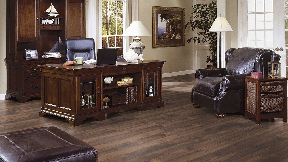 Толщина ламелей – 10мм. Пол получается прочным, устойчивым к весовым нагрузкам. Ламинат не прогибается под ножками тяжелой мебели, на нем не появляется вмятин и трещин от падения предметов.