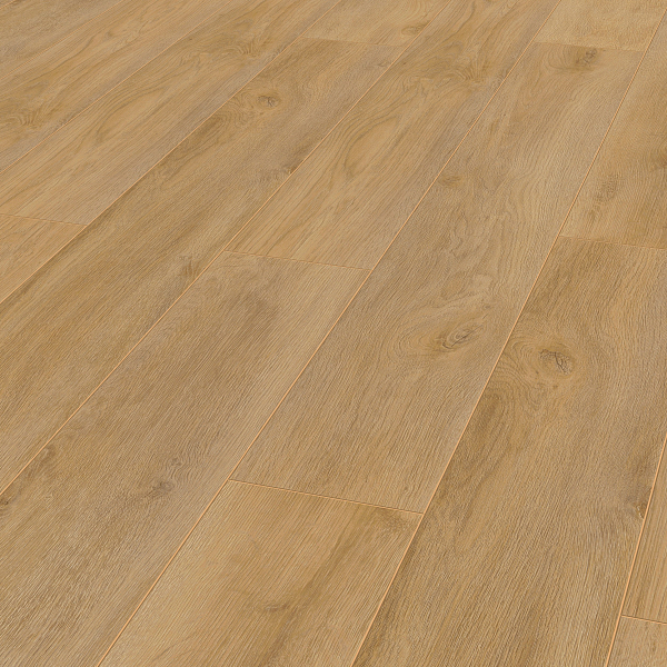 Толщина ламелей – 12мм. Пол получается прочным, устойчивым к весовым нагрузкам. Ламинат не прогибается под ножками тяжелой мебели, на нем не появляется вмятин и трещин от падения предметов.