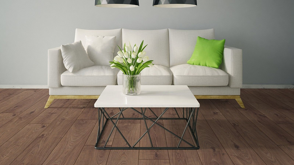 Толщина ламелей – 12мм. Пол получается прочным, устойчивым к весовым нагрузкам. Ламинат не прогибается под ножками тяжелой мебели, на нем не появляется вмятин и трещин от падения предметов.