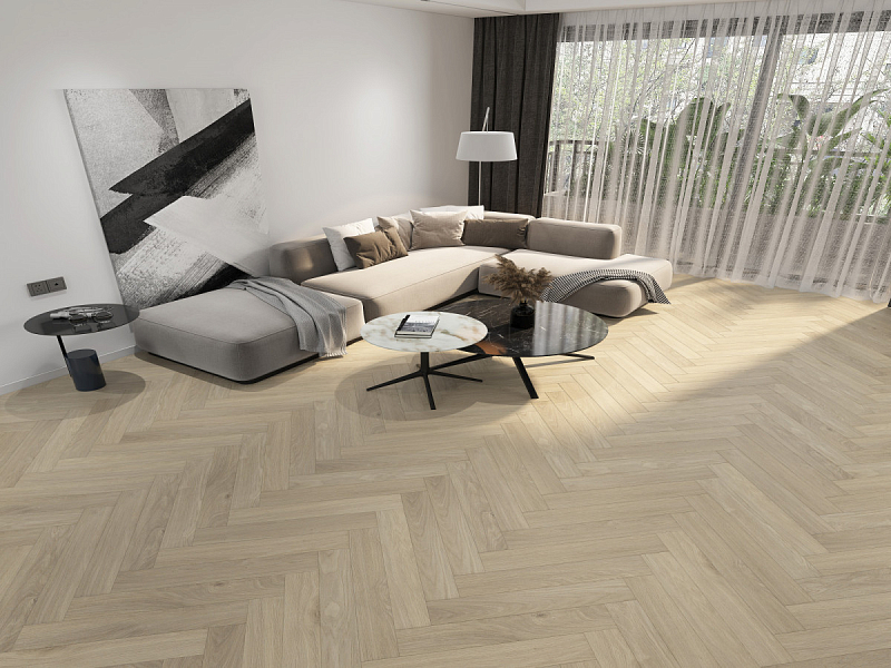 Покрытие подходит для облицовки полов в любом стиле оформления интерьера. Рисунок "Елочкой" хорошо сочетается с разными настенными панелями, позволяет воплощать интересные дизайнерские находки.