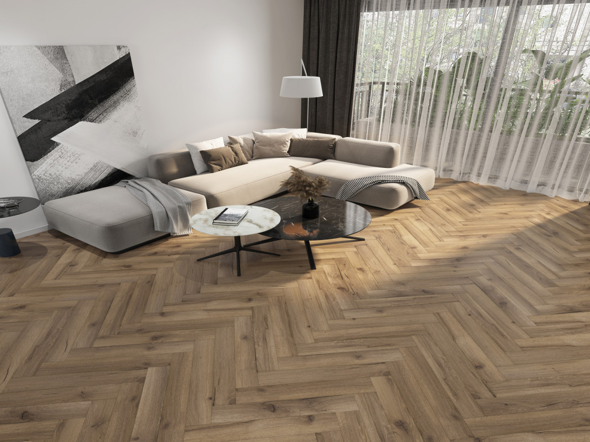 Покрытие подходит для облицовки полов в любом стиле оформления интерьера. Рисунок "Елочкой" хорошо сочетается с разными настенными панелями, позволяет воплощать интересные дизайнерские находки.