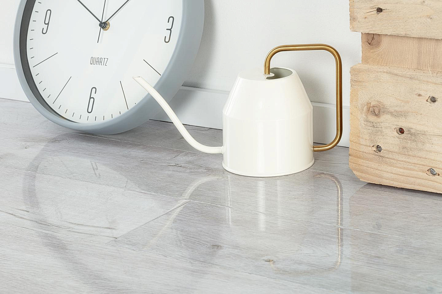 Уход за ламинатом не сложен. Материал не боится никаких загрязнений, не портится от бытовой химии. Сложные пятна можно удалять даже ацетоном – на поверхности не останется пятен и выцветших участков.