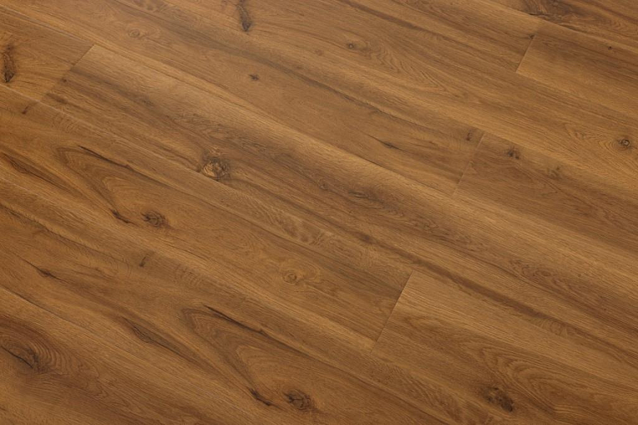 Толщина ламелей – 12мм. Пол получается прочным, устойчивым к весовым нагрузкам. Ламинат не прогибается под ножками тяжелой мебели, на нем не появляется вмятин и трещин от падения предметов.
