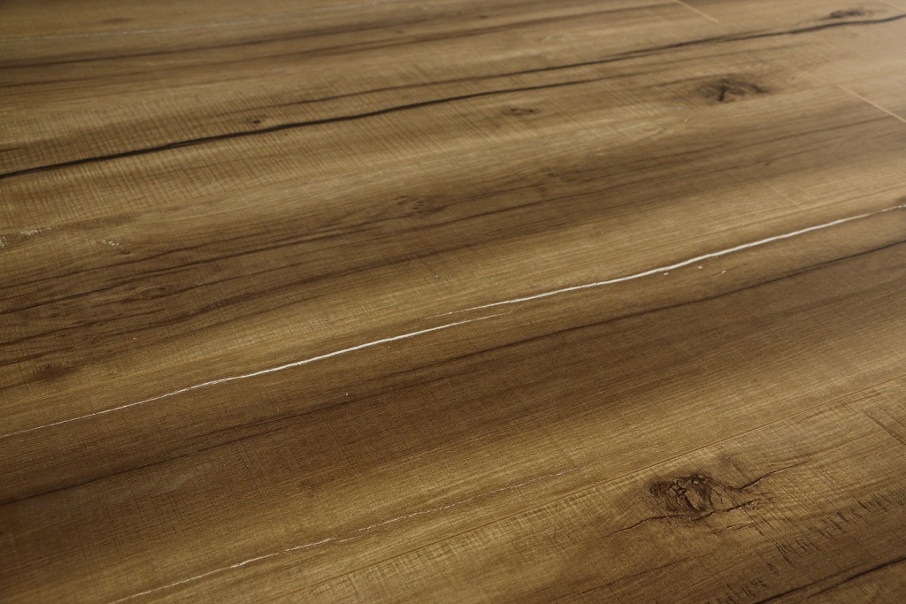 Толщина ламелей – 12мм. Пол получается прочным, устойчивым к весовым нагрузкам. Ламинат не прогибается под ножками тяжелой мебели, на нем не появляется вмятин и трещин от падения предметов.
