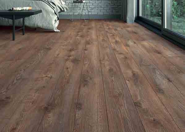 Толщина ламелей – 12мм. Пол получается прочным, устойчивым к весовым нагрузкам. Ламинат не прогибается под ножками тяжелой мебели, на нем не появляется вмятин и трещин от падения предметов.