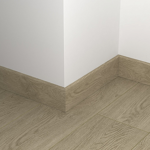 Монтаж плинтусных плашек прост. Все элементы соединяются с помощью замков, так что сбор обрамления не займет много времени. На нижней поверхности плашек есть выемки, в которые можно уложить провода, тонкие трубы. Так можно скрыть коммуникации, проходящие вдоль стен.
