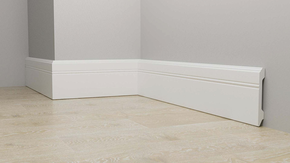 Монтаж плинтусных плашек прост. Все элементы соединяются с помощью замков, так что сбор обрамления не займет много времени. На нижней поверхности плашек есть выемки, в которые можно уложить провода, тонкие трубы. Так можно скрыть коммуникации, проходящие вдоль стен.