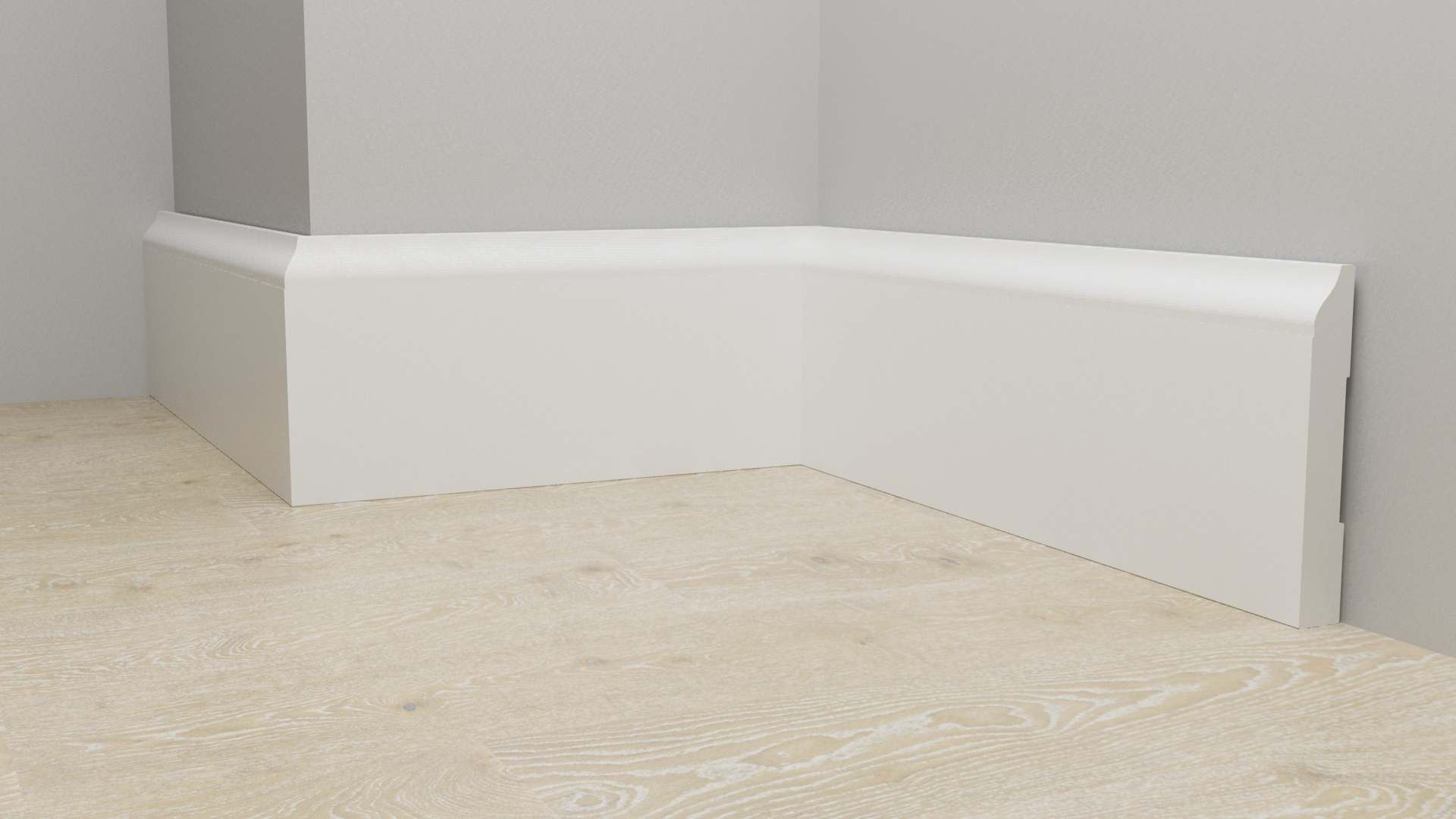 Высота планок – 83мм. Ее достаточно, чтобы скрыть все технические зазоры – между напольным полотном и стеной, между нижней настенной панелью и полом. Нижний край настенной панели можно завести под плинтус, который станет своеобразной рамкой для оформления. Предварительного выравнивания стыка пола и стен не требуется.
