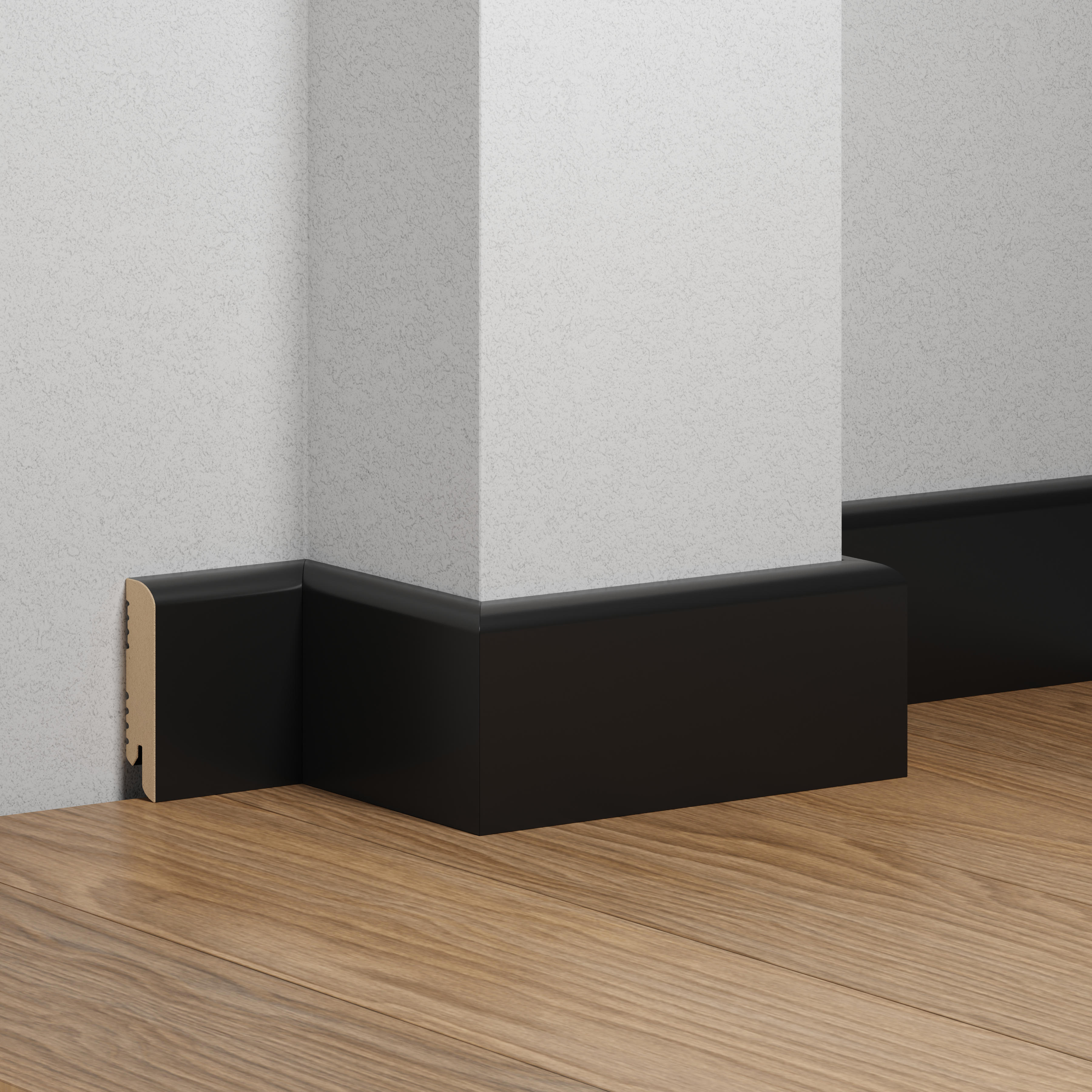 Плинтус напольный МДФ DeArtio Глубокий черный К-02 Ликорн: описание, фото, характеристики и аксессуары.
