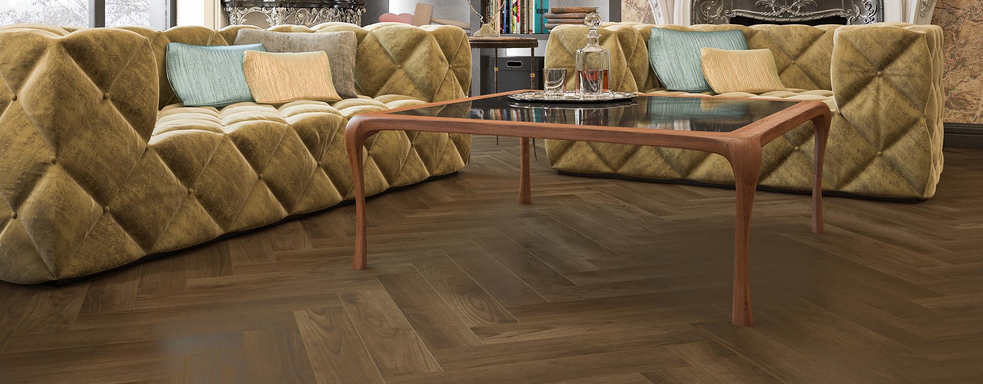 Виниловый ламинат FIRMFIT Herringbone CW-3290 Орех американский: описание, фото, характеристики и аксессуары.